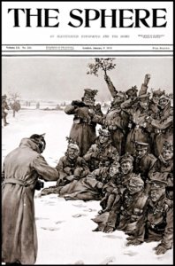 Cover der Zeitschrift »The Sphere« vom 9. Januar 1915: Mistelzweige schmücken Sachsen und Briten am Weihnachtsmorgen.