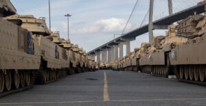 US-Panzer vor dem Verlad in Savannah, Georgia (USA), für die NATO-Manöver Defender-Europe 21 am Schwarzen Meer. Bild: YouTube