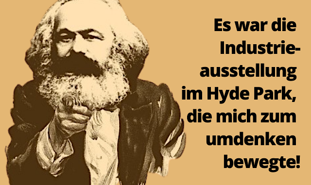 Zwar steht im Manifest der Satz: „Seit Dezennien ist die Geschichte der Industrie und des Handels nur die Geschichte der Empörung der modernen Produktivkräfte gegen die modernen Produktionsverhältnisse“, aber dieser schon vor der 48er Revolution zu Papier gebrachte Gedanke3 der während der Revolution und über sie hinaus das Leitmotiv der Kommunistinnen und Kommunisten war und blieb, wurde zeitlich falsch, als rasch kommend taxiert. Es war die Industrieausstellung im Hyde Park, die Marx besuchte und die ein Umdenken bewirkte. Diese für damalige Verhältnisse gigantische Ausstellung ließ Marx erkennen, welche enormen Produktivkräfte im Schoß der bürgerlichen Gesellschaft noch schlummern, gewaltiger noch als im Manifest bereits skizziert. Diese brauchen noch Zeit zur riesenhaften Entfaltung, sie müssen reifen und der Gedanke an eine unmittelbar bevorstehende bürgerliche Revolution auf mittlerweile kümmerlichen Produktionsbedingungen auf dem Kontinent wurde auf die Bank geschoben.