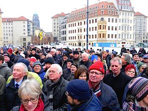 Aber und das ist sehr wichtig, es gab viele Menschen, die den Rednern Beifall klatschten, die dem Hass, der schäumend aus den Kehlen geschrien wurde, nicht wichen. Damit mischte sich neben dem Ekel, den man bei den unanständigen Rufen empfand, ein Gefühl des Zusammenhaltes der Anständigen. Gleich welche Bilder nun wieder aus Dresden hinausgehen werden, diejenigen, die den Dialog und die Würde des Einzelnen nicht von einem Haufen unverschämter Schreihälse niedergebrüllt sehen wollen, waren heute auch da. Und bei allem Unmut, der in solchen Situationen aufkommt, ist es wichtig nicht zu vergessen, dass es viele Menschen gibt, die für eine Welt von Versöhnung und Respekt einstehen.