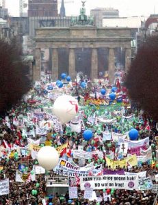 Gegen den imperialistischen Golfkrieg der USA und ihren Verbündeten demonstrierten im Berlin am 13. Februar 2003 mehr als 500.000 Menschen. Inweiteren 600 Städten der Erde beteiligten sich zur gleicher Zeit insgesamt rund 16 Millionen Menschen.