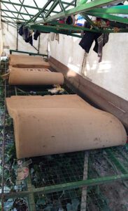 Die tägliche Arbeitszeit dauert von Sonnenaufgang bis Sonnenuntergang, auch an Wochenenden. Solange liegen die „osteuropäischen Erntearbeiter“, egal ob es regnet oder ob Außentemperaturen bis zu 38 Grad herrschen, auf mit Schweiß getränkten Schaumstoffmatrazen, welche Saison für Saison wiederverwendet werden. Bis zu 30 Männer und Frauen schuften wie Galeerensklaven und -sklavinnen in diesen monströsen Ernteapparaten, 15 in jedem der durch eine Plane gegen die Witterung und vor allem gegen Blicke abgeschirmten Flügel. – In der Tat erinnern diese Konstruktionen an Galeerenschiffe. Der Unterschied zu diesen ist eher vernachlässigbar, er besteht darin, dass die Menschen in den Gurkenfliegern als Lohnarbeiter bezeichnet werden. Die Löhne in dieser Branche lagen in den letzten Jahren zwischen 2,5 und 5,- Euro – Frauen wurde „selbstverständlich“ weniger bezahlt – wir kennen das ja.