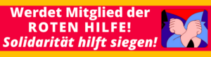 Eine Mitgliedschaft in der Roten Hilfe (RH) hilft unrerer Solidatitätsarbeit sehr, da die RH nur durch die regelmäßigen Beitragszahlungen ihrer Mitglieder kontinuierliche Antirepressionsarbeit ermöglichen kann und somit nicht auf ein schwankendes und schwer vorhersehbares Spendenaufkommen angewiesen sind. Wenn du Mitglied werden möchtest, dann bitte folgendes Beitrittsformular ausdrucken und unterschrieben an die angegebene Adresse einsenden oder das Online-Formular verwenden. Mitglieder erhalten die 4 x im Jahr erscheinende »Rote Hilfe Zeitung« kostenlos im Abo. Mehr dazu hier .