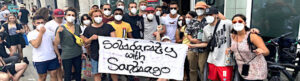 „No Pasaran“ steht auf dem Banner, welches über der Tür an der Glasfassade hängt. Ca. 40 Menschen stehen herum und unterhalten sich, malen weitere Banner. Auch einige Journalist:innen sind da und führen Interviews. Plötzlich bildet sich eine Menschentraube vor der Tür. Zwei Männer, welche von sich behaupten Rider – Lieferfahrer – zu sein, wollen das Gebäude betreten, werden jedoch daran gehindert. Denn das Gorillas-Lager im Kaiserkorso 154 in Tempelhof wird seit Freitag morgen bestreikt. Und auch die Beschäftigten in Schöneberg und Gesundbrunnen, sowie kurzzeitig aus Mitte, haben sich angeschlossen. Mittlerweile gibt es einen Aufruf unter #StartUpsideDown Fotos seines umgedrehten Fahrrads zu posten, um Solidarität auszudrücken.