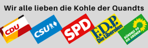Ein Taschengeld aus dem Profit gibt es traditionellerweise für diejenigen, die in Deutschland demokratisch zur Lenkung des Staates bestimmt werden. Die Lobbytätigkeit der Quandts ist umfangreich. CDU, CSU, SPD, FDP, Grüne – alle bekamen schon mal was. Die NGO Lobbycontrol rechnet vor, dass seit 2000 rund 10 Millionen Euro an die genannten Parteien flossen. Besonders eng sind traditionell die Beziehungen zu den Christdemokraten, so war etwa der Leiter des Bereichs „Konzernkommunikation und Politik“, Maximilian Schöberl, zuvor Leiter der Pressestelle der Münchener CSU.