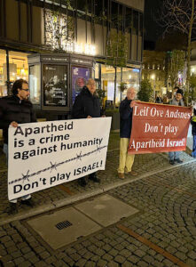 Am Montag, dem 7. Februar verteilten Mitglieder von BDS Bonn vor der Kölner Philharmonie Flugblätter und brachten auf Transparenten zum Ausdruck, dass Leif Ove Andsnes die Instrumentalisierung der Kunst durch Politik nicht zulassen sollte.