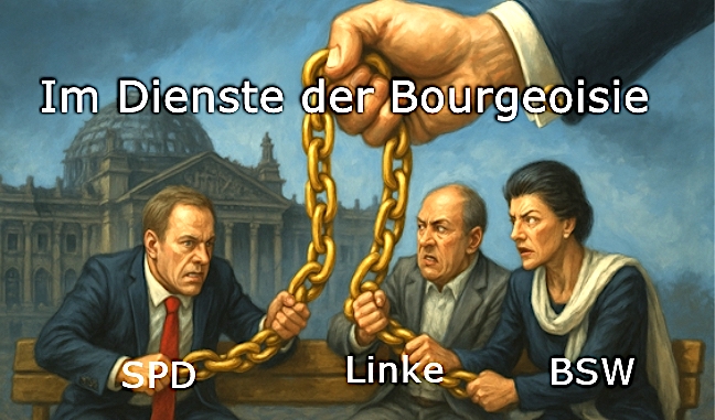 Doch der Opportunismus trägt viele Gewänder. Wer glaubt, die Linkspartei oder das „Bündnis Sahra Wagenknecht“ seien Alternativen, irrt fundamental. Die einen träumen von einem sozial regulierten Kapitalismus, die anderen wollen nationale Protektion und einen „Sozialstaat“, der den Klassengegensatz zudeckt. Beide verteidigen den bürgerlichen Staat – beide lehnen die Diktatur des Proletariats ab. Damit stehen sie objektiv auf der Seite der Ausbeuter.
