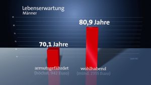10 Jahre und 8 Monate bei Männern und 8 Jahre und 4 Monate bei Frauen ist der Unterschied bei der Lebenserwartung zwischen Menschen, die wenig Einkommen haben, und Wohlhabenden. Das hat eine Studie des Robert-Koch-Institutes ergeben.