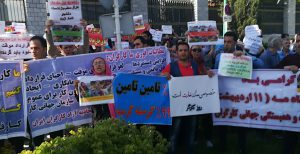 „Am 1. Mai versammelten sich auch in Teheran Gewerkschafter/innen und demonstrierten für ihre Rechte. Der Ort der Kundgebung war der Baharestan-Platz, direkt vor dem iranischen Parlamentsgebäude.