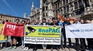 Es hatte keine einzelne Gruppe zum Protest eingeladen, sondern ein Bündnis namens „noPAG“ aus mehr als 90 Organisationen, die sonst wohl eher selten gemeinsame Events durchführen. Eine kleine Auswahl: Die Antikapitalistische Linke München, der Bayerische Journalistenverband, die kurdische Jugend, die Grünen, die Partei, der Münchner Flüchtlingsrat, die Selbsthilfegruppe „Cannabis als Medizin München“ und der republikanische Anwältinnen- und Anwälteverein. Dass sich so viele Menschen mit so vielen unterschiedlichen Interessen am Donnerstagnachmittag in der Stadt zusammenfinden, zeigt, wie groß der Widerstand gegen das Polizeiaufgabengesetz ist.