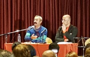 Wie kann es sein das es in der faschistischen Türkei einen kommunistischen Bürgermeister gibt fragten sich viele der Besucher. „Meine politische Arbeit muss vor dem Hintergrund der Entwicklungen in Mardin, Diyarbakir und Van betrachtet werden“ erzählte Genosse Fatih Mehmet den Anwesenden. Die Bürgermeister dieser Städte wurden (unter dem Vorwand der Terrorismusbekämpfung) entmachtet. Durch diese repressive Politik stehen jetzt viele fortschrittliche Bürgermeister in der Türkei unter Druck: Als demokratisch gewählte Bürgermeister laufen sie Gefahr, selbst entmachtet und in Schauprozessen angeklagt zu werden. Jetzt gilt es mehr denn je, sich mit den demokratischen Kräften in der Türkei zu solidarisieren und die Demokratiebewegung zu unterstützen.