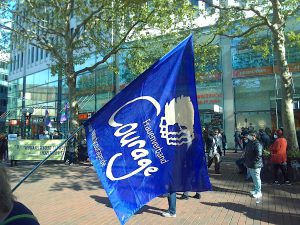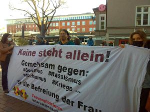 Sie protestierten gegen den Missbrauch der Wut zahlloser Bürgerinnen und Bürger gegen die Corona-Maßnahmen durch offene Nazis, durch rechte Kräfte, die den Protest tausender in die rechte, staatstreue (für das Grundgesetz!), nationalistische und freiheitsfeindliche Bewegung ummünzen wollen und zahllose Verschwörungstheoretiker, die das kapitalistische Wesen der Corona-Krise vertuschen und vom Kern der Sache, dem Kampf gegen das Kapital und das kapitalistische System ablenken.