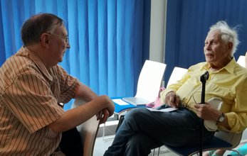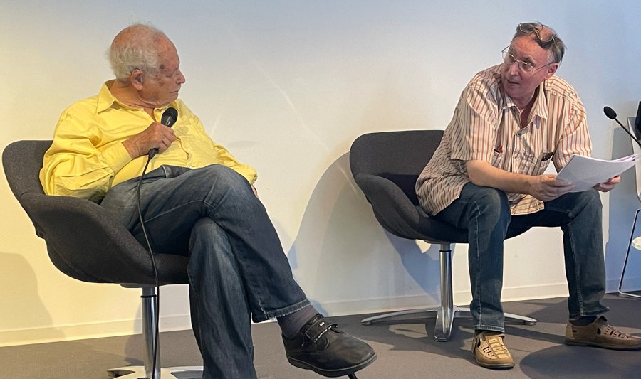 Victor Grossman (links), Zeitzeuge, und F.-B. Habel (rechts), Moderator, im Gespräch