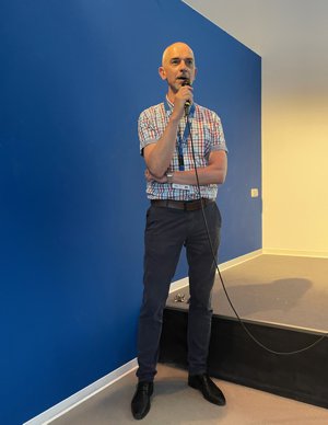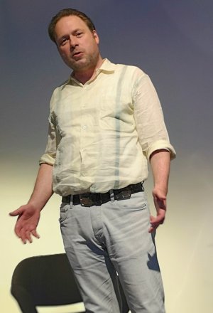 Der nächste Programmpunkt war der künstlerischen Reflexion Dean Reeds im Theater gewidmet. Gerade in jüngster Zeit sind einige Theaterstücke über ihn entstanden. Auf der Veranstaltung wurden zwei davon exemplarisch thematisiert: das Solotheaterstück "Dean Reed ist tot" von Markus Gille (2019) und das Stück "Iron Curtain Man" von Lars Werner und Fabian Gerhardt (2020). Markus Gille war der Einladung, auf der Veranstaltung persönlich aufzutreten, gefolgt, so dass das Publikum sich nun an einem Live-Auftritt erfreuen konnte, bei dem Markus Gille sehr beeindruckend eine Szene aus seinem Stück vorspielte und es kommentierte.