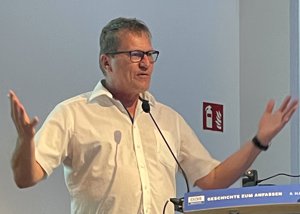 Recherchen sind natürlich auch notwendig bei der Präsentation historischer Persönlichkeiten in Museen. Zur museologischen Darstellung von Dean Reed sprach Herr Prof. Dr. Oliver Rump, Mitbegründer des Studienangebotes Museumsmanagement der Universität Hamburg und seit 2008 Professor für die Lehrgebiete Museologie, Museumsmanagement und ‑marketing an der HTW Berlin. Sein Schwerpunkt ist die politische Museologie, speziell die Erschließung und Vermittlung von Persönlichkeiten der deutschen Geschichte mit sozialistischem und kommunistischem Kontext wie Tamara Bunke, Tania La Guerillera, Dean Reed und Werner Seelenbinder. Er stellte das studentische Recherche-Projekt "Der Fall Dean Reed: Hammer + Sichel & Rock'n'Roll" vor, das er leitete. Studierende als junge Menschen konnten Dean Reed ja nicht mehr selbst kennen lernen. So regte sie Oliver Rump an, über Dean Reed als historische Persönlichkeit zu recherchieren und sie museologisch darzustellen.
