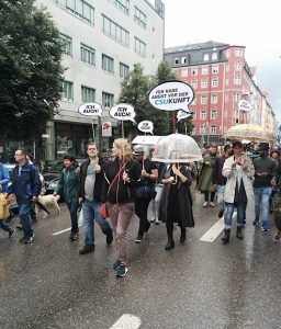 An den Haltepunkten gab es Reden zu verschiedenen Themen wie der unmenschlichen Flüchtlingspolitik, dem Rechtsruck der CSU und der Bundesregierung, zum Sozialabbau, für den nicht die Flüchtlinge, sondern die herrschende Klasse und ihre Regierung verantwortlich sind.