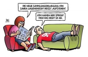 Unglücklicherweise darf darüber aber nicht offen debattiert werden. Die äußeren Umstände und der verschwörerische Charakter ihrer Entstehung verdonnern #aufstehen dazu, unermüdlich zu beteuern, sie wolle nur eine diffuse „Bewegung“ sein, die nicht an Wahlbeteiligungen und Parteigründungen usw. denken würde. Damit wird die LINKE zunächst ruhig gehalten, Dabei weiß jedes Kind, dass ohne diesen praktischen Bezug auf Wahlkämpfe die gesamte Konzeption der „neuen Sammlungsbewegung“ nichts als am Schreibtisch ausgeheckter Blödsinn ist.