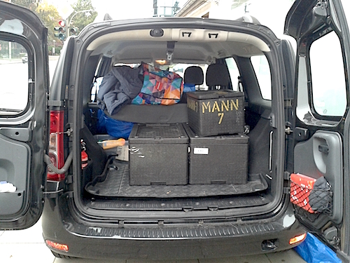 Als wir am Sonntag gegen 11:00 Uhr bei Susi ankamen, standen schon Kisten, Flaschen und viele Taschen mit Kleidung auf dem Bürgersteig vor ihrer Tür. Zwei Mädchen aus der Nachbarschaft aus dem 4. Stock hatten alles aus dem Keller geschleppt und zum Einladen positioniert. Susi selber brutzelte noch die letzten Bratwürste und gab Anweisung. Ein zweites Auto mit einer Helferin kam noch hinzu und wir stopften ihren Kleinwagen mit den Taschen voller gespendeter Kleidungsstücke voll. So dass wir wenig später aufbrechen konnten.
