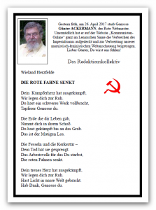 1. Lothar Häupl beklagt das Aussterben alter Genossen und die Uneinigkeit von Kommunisten verschiedener Gruppen: https://www.facebook.com/haupl.lothar/videos/1889867304372817/
